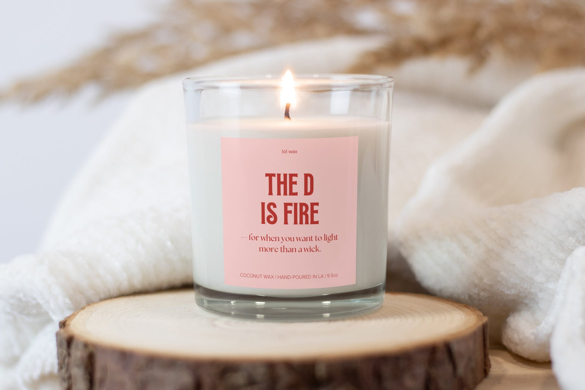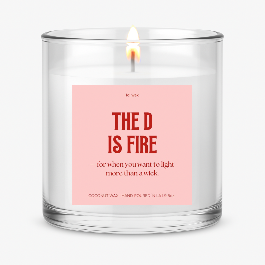 "The D is Fire" candle is a bold and fun choice for a Valentine's Day surprise, specially designed to add a spark to the most romantic day of the year. Lovingly hand-poured in LA, our 9.5oz coconut wax candle burns clean, inviting the mysteries of love into your home with its complex Tonka and Oud fragrance. Begin with a top note of Powder and Amaretto, move through a heart of Tonka Bean and Balsam, and settle into a sensual base of Rum and Oud.
