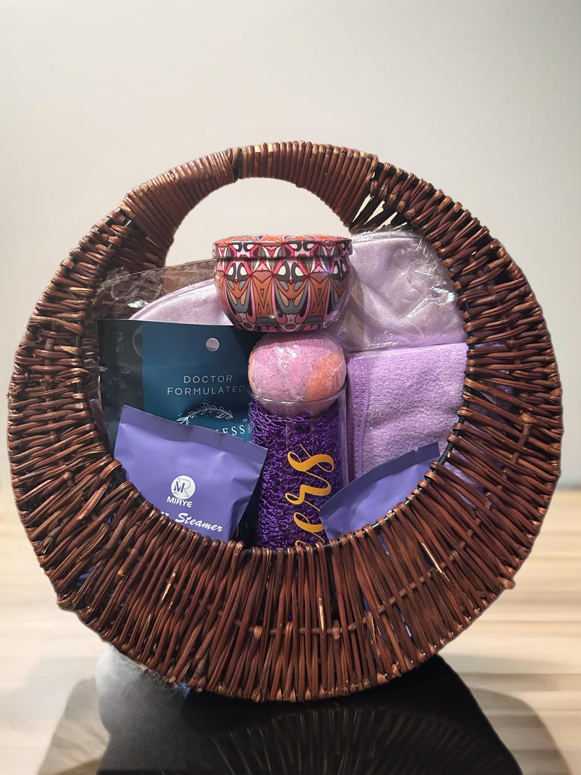 "Purple Paradise" Hand Bag Wicker Spa Gift Basket